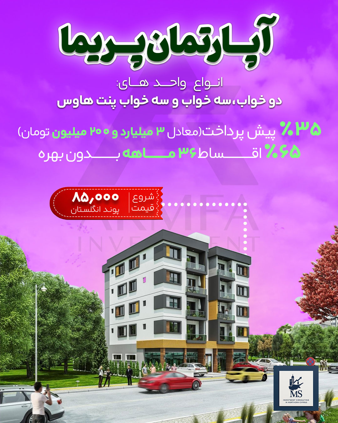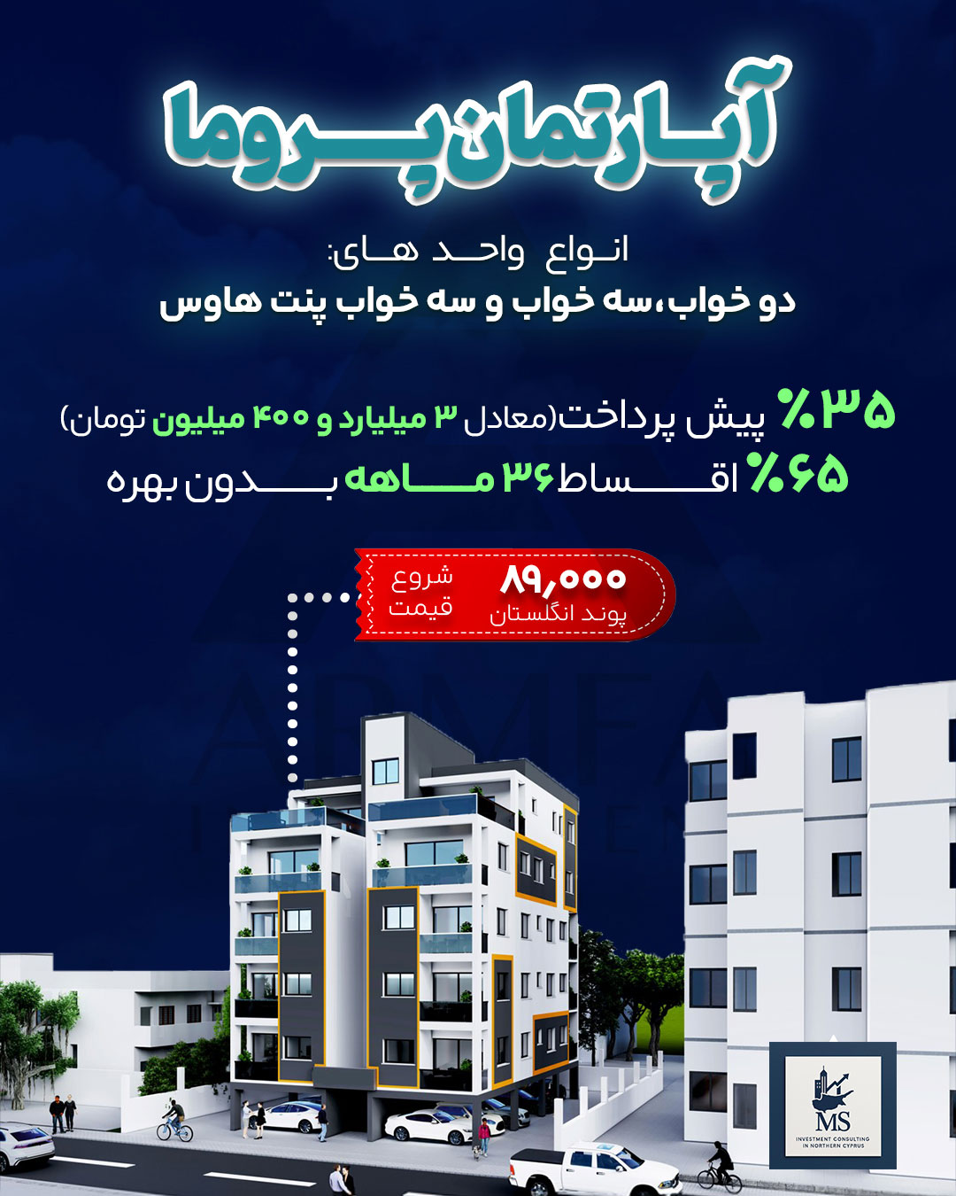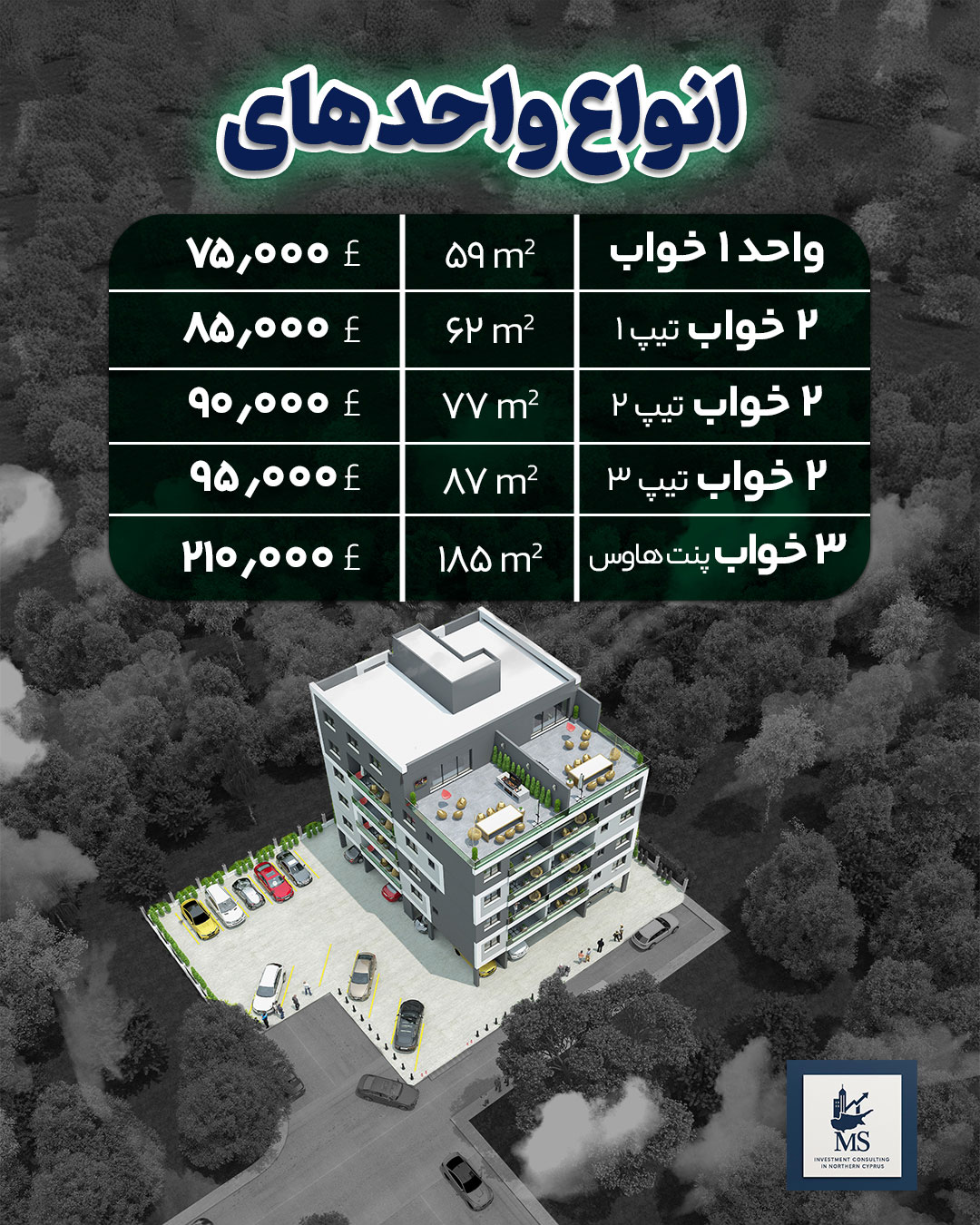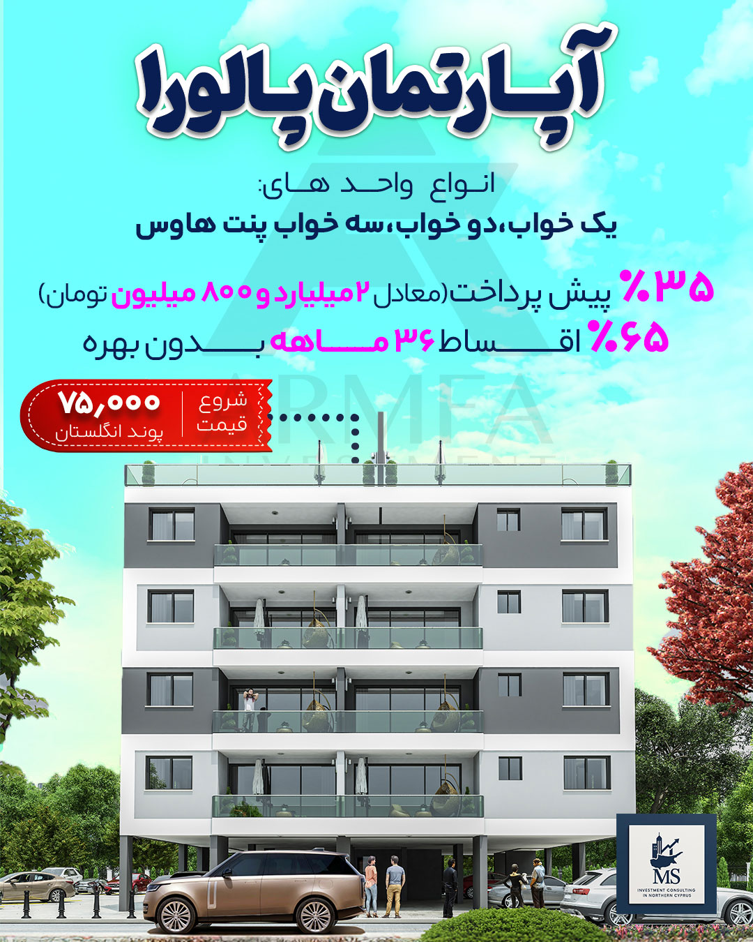 این آپارتمان که در نزدیکی جاده ماگوسا-لفکوشا و مرکز خرید سیتی مال قرار دارد ، دارای واحدهای 2 خواب ، 3 خواب و پنت هاوس از 70 تا 150 متر میباشد. شروع قیمت ها از 89.000 پوند انگلستان است و با تنها 35 درصد پیش پرداخت (معادل حدودی 3 میلیارد و 400 میلیون تومان) میتوانید اقامت قبرس شمالی را دریافت کنید.