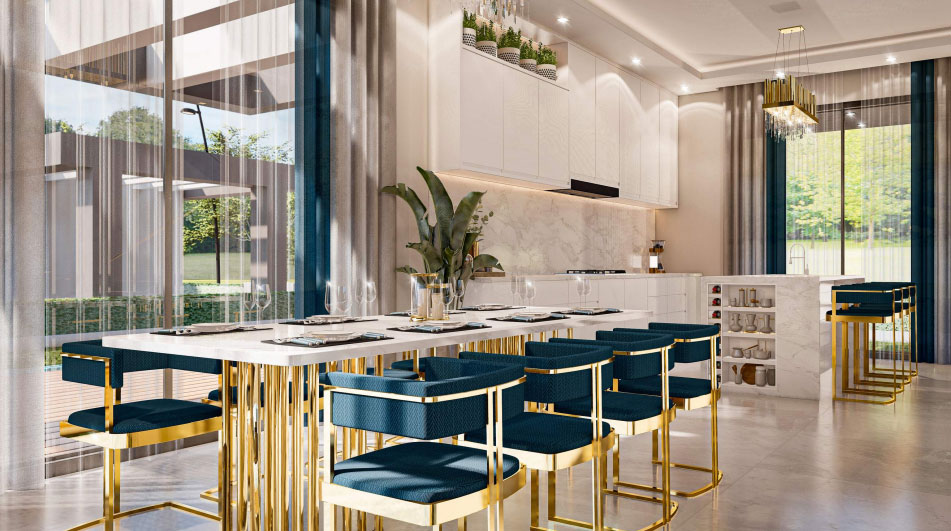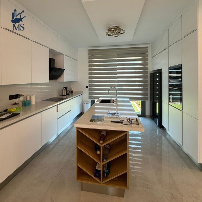 آشپزخانه مدرن و هایگلاس همراه با جزیره